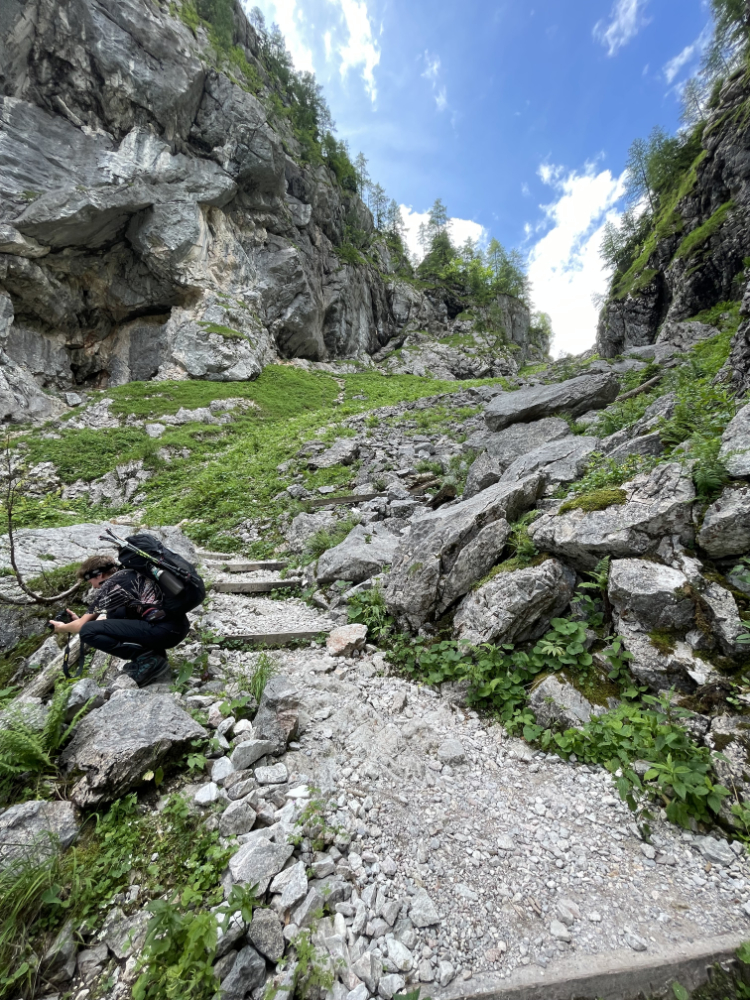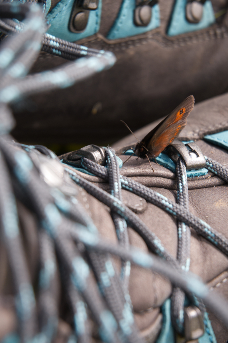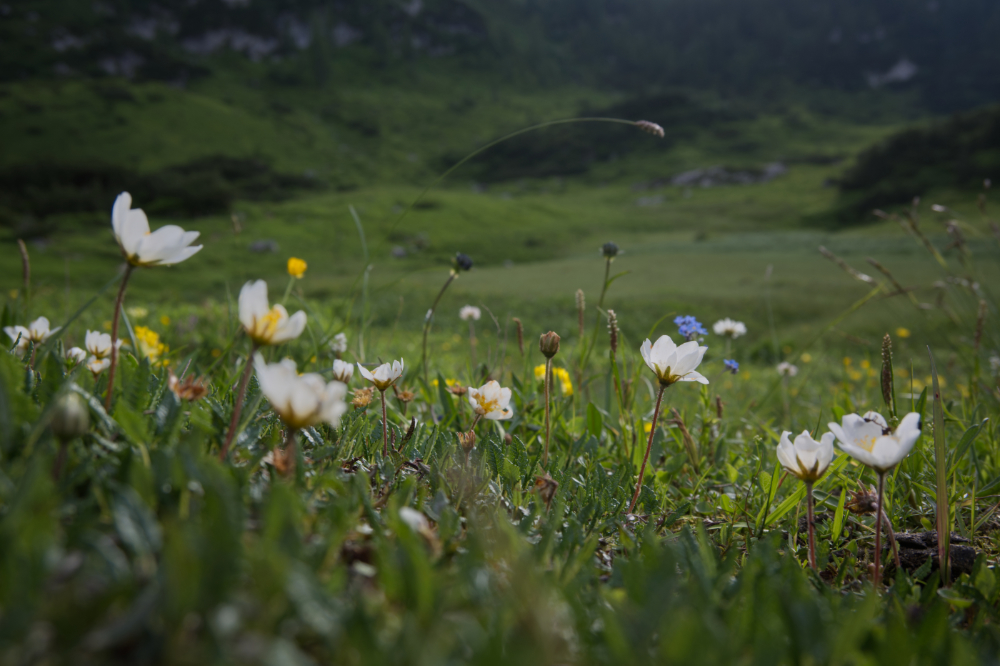 Damit die Kamera mit 1,5kg nicht umsonst mitgeschleppt wurde, geht es beim ersten Sonnenschein nach dem Regen noch eine kleine Runde an den Funtensee. Blümchen, Schmetterlinge und lockere Schäfchenwolken am Himmel – die Bergidylle zeigt sich in vollen Zügen.