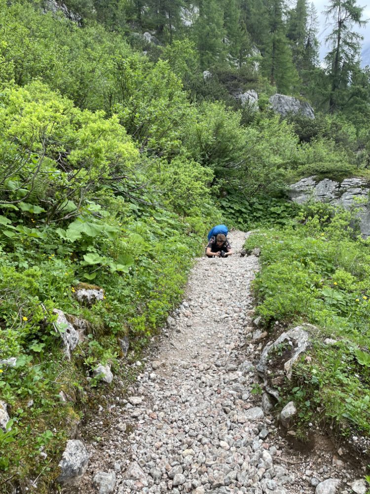 Nur wenig später begegnen wir dem nächsten Alpenbewohner: ein Murmeltier springt fröhlich vor uns den Weg entlang. Als wir ihm zu nah auf die Pelle rücken, werden wir mit einem lauten Pfeifen zurück auf unsere Plätze verwiesen.