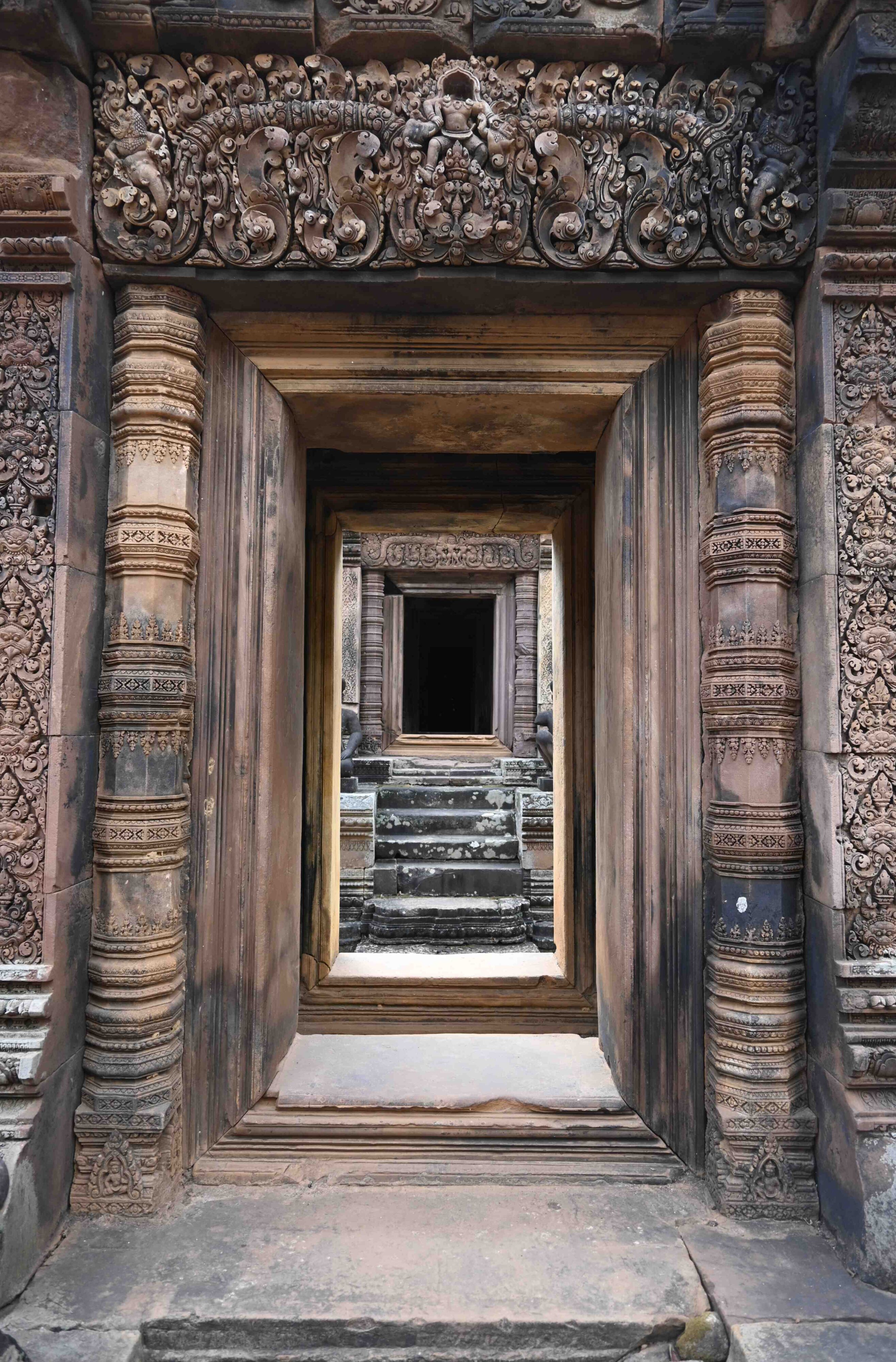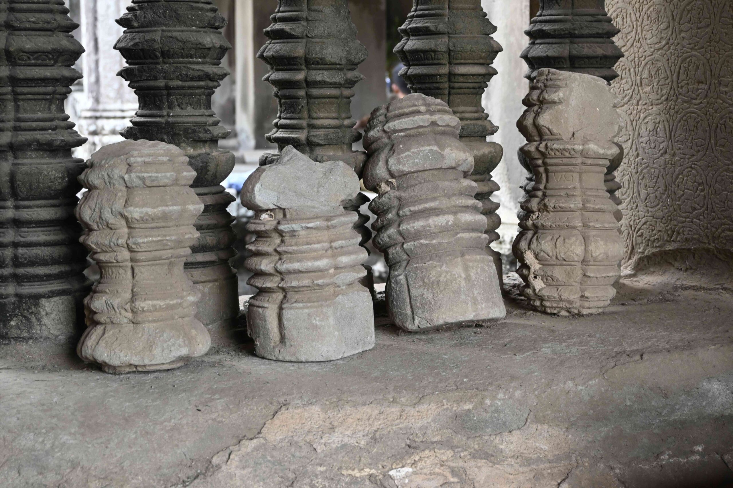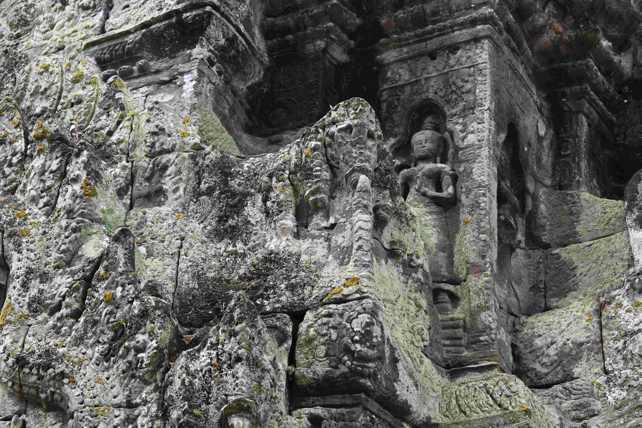 Im Tempel sitzt eine kopflose Statue und auch auf den Wänden wurden Abbildungen von hinduistischen Gottheiten ausgekratzt. Als der Hinduismus durch den Buddhismus vertrieben wurde, war man sehr bequem und hat einfach den schon bestehenden Tempel mit kleinen Änderungen übernommen. Der Kopf der Statue könnte sich zum Beispiel in einem deutschem Musuem unter der Raubkunst befinden.