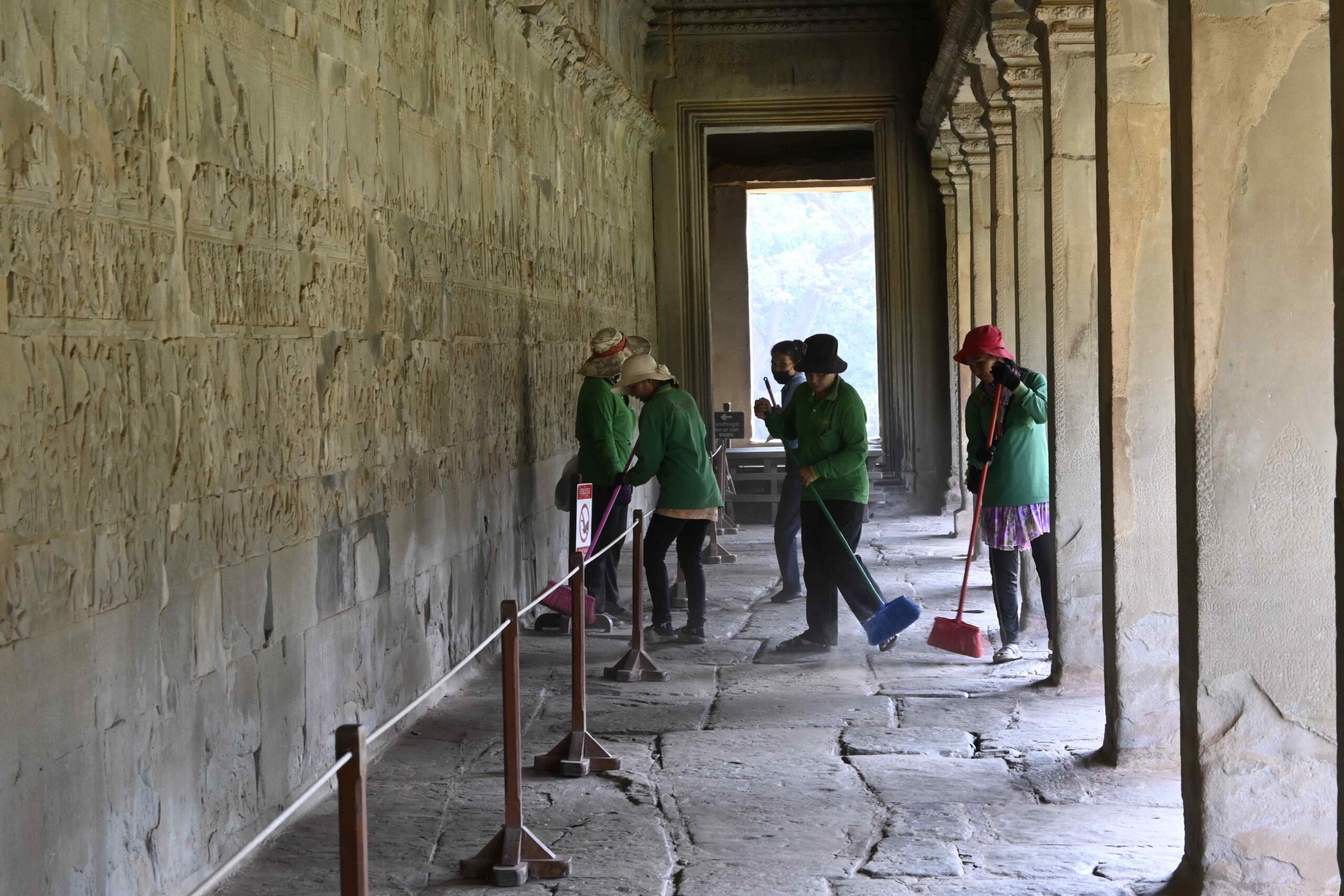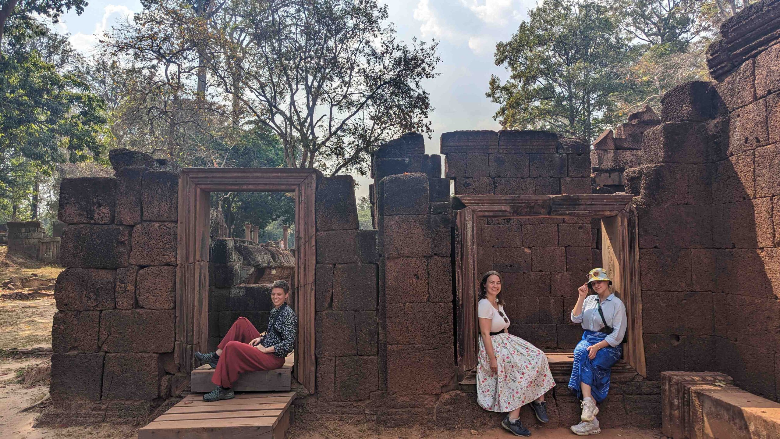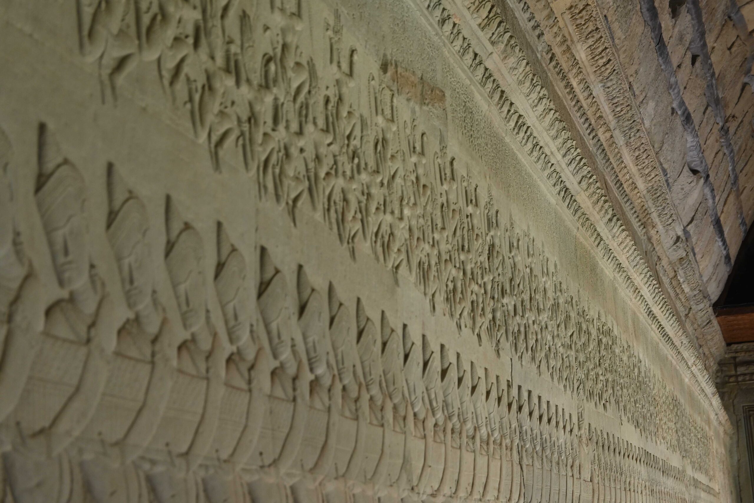 Im Tempel sitzt eine kopflose Statue und auch auf den Wänden wurden Abbildungen von hinduistischen Gottheiten ausgekratzt. Als der Hinduismus durch den Buddhismus vertrieben wurde, war man sehr bequem und hat einfach den schon bestehenden Tempel mit kleinen Änderungen übernommen. Der Kopf der Statue könnte sich zum Beispiel in einem deutschem Musuem unter der Raubkunst befinden.