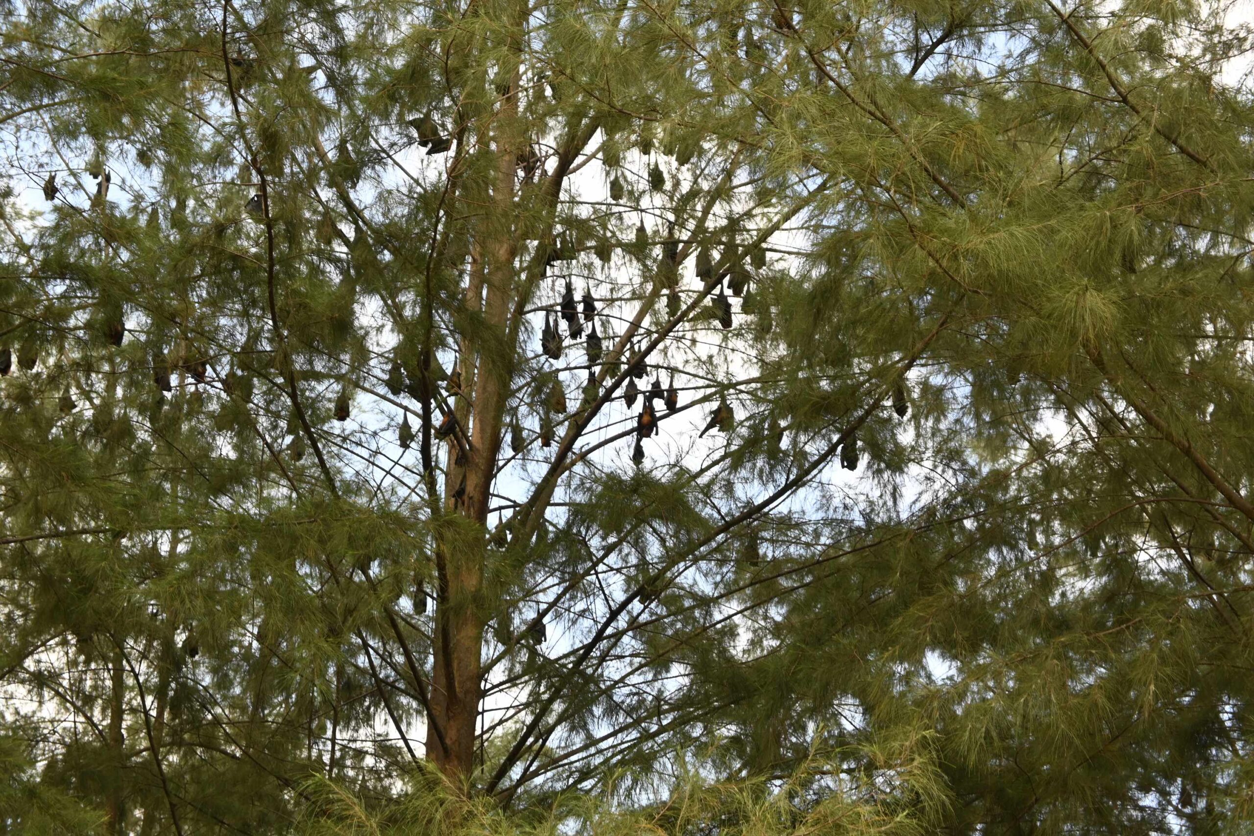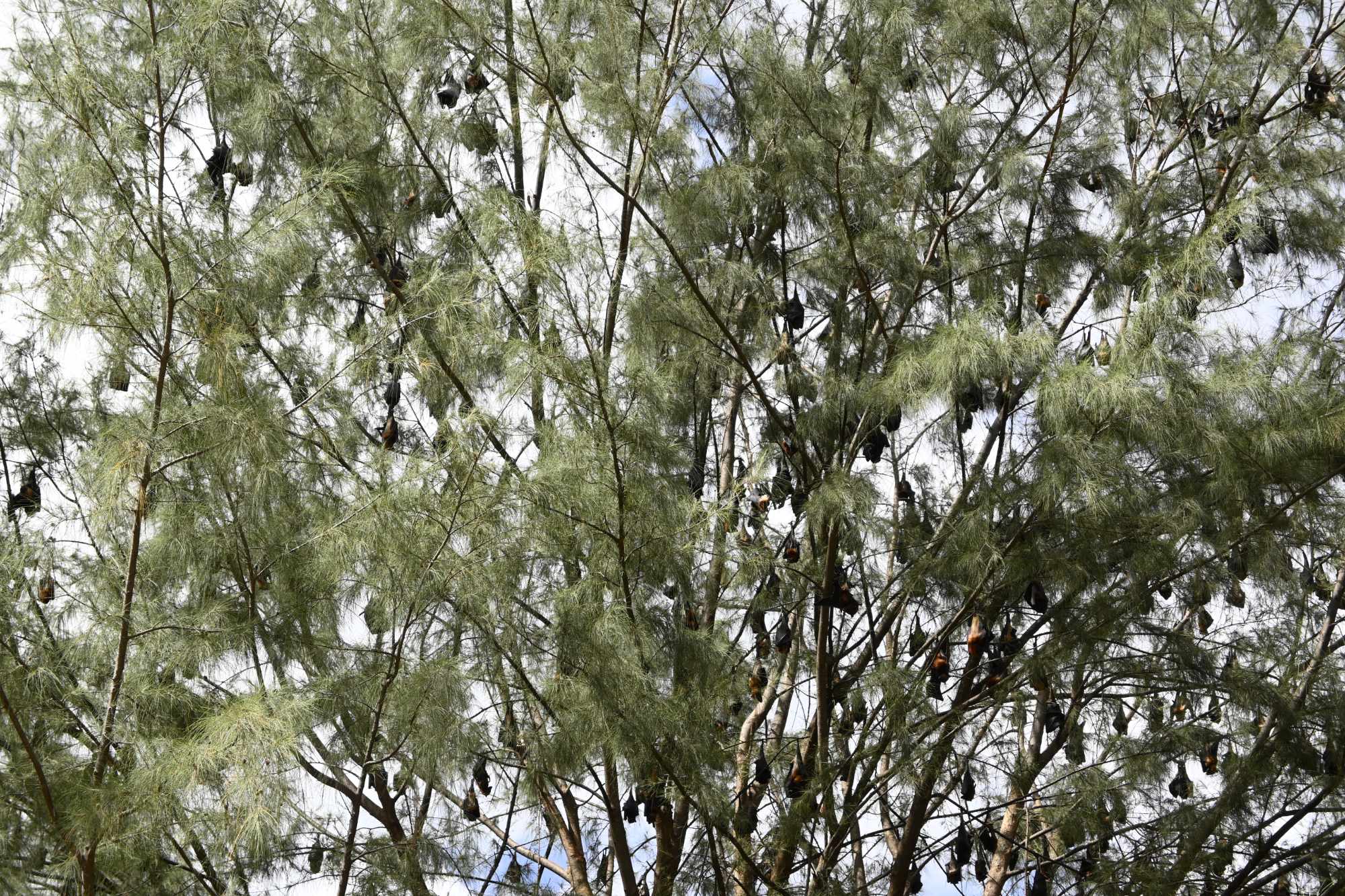 Unser erster Stopp sind die Flughunde-Bäume. Überall hängt alles voll mit ihnen. Tagsüber hängen die Mini-Draculas kopfüber von ihren Ästen und fächert sich immer wieder kühlende Luft mit ihren Flügeln zu. Gelegentlich gibt es einen kleinen Streit, um den besten Platz, aber sonst ist alles sehr friedlich und die Flughunde piepsen leise vor sich hin. Obwohl wir sehr fasziniert sind bewahren wir einen gesunden Sicherheitsabstand, denn der Kot der Tiere ist Überträger für einige fiese Krankheiten.