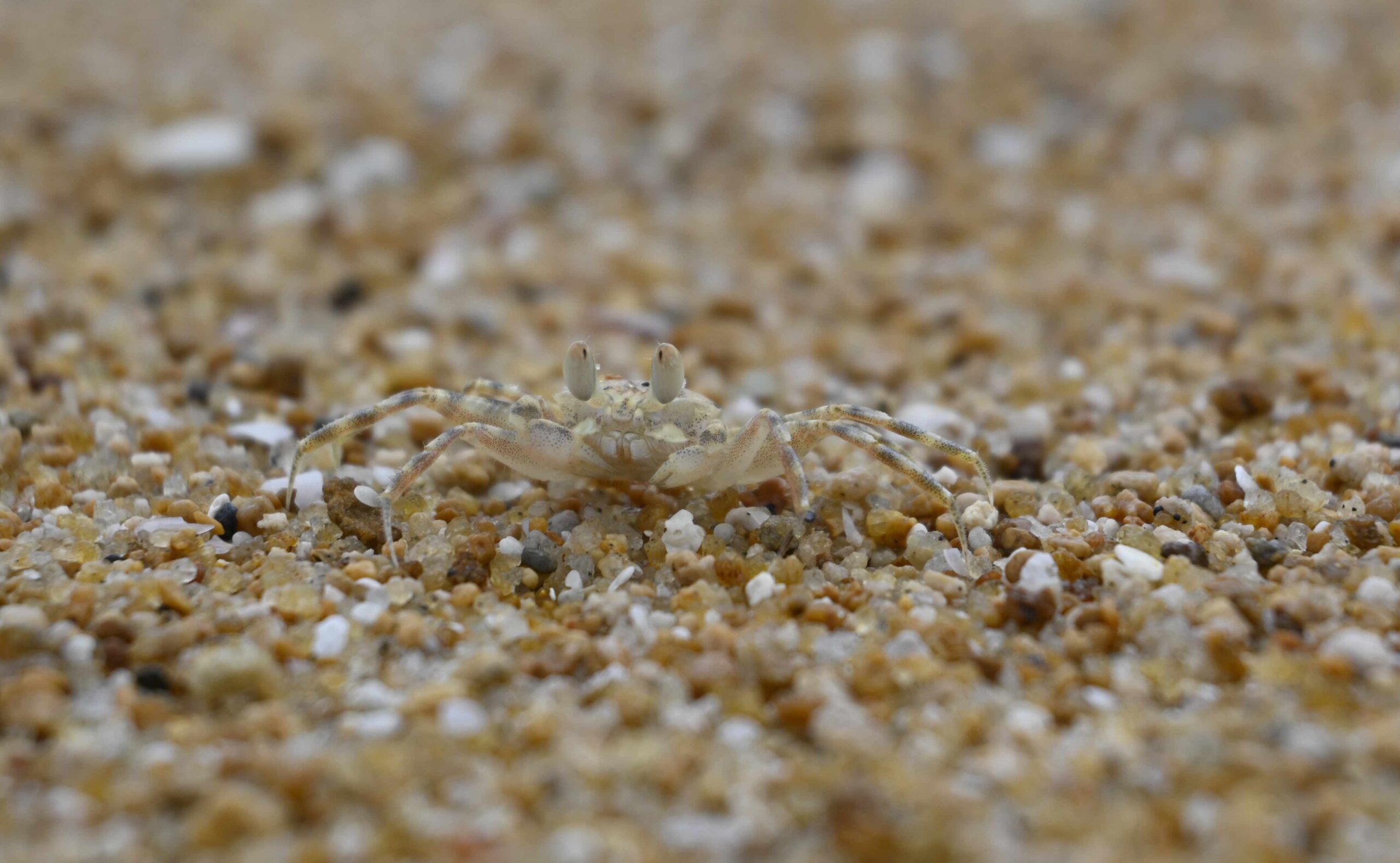 diese wunderbaren Rennkrabben zu erwischen. Absolut getarnt und schnell wie ein Sandkorn im Wind huschen sie über den Strand. Mit etwas Geduld bekomme ich dann aber ein paar direkt vor die Linse.