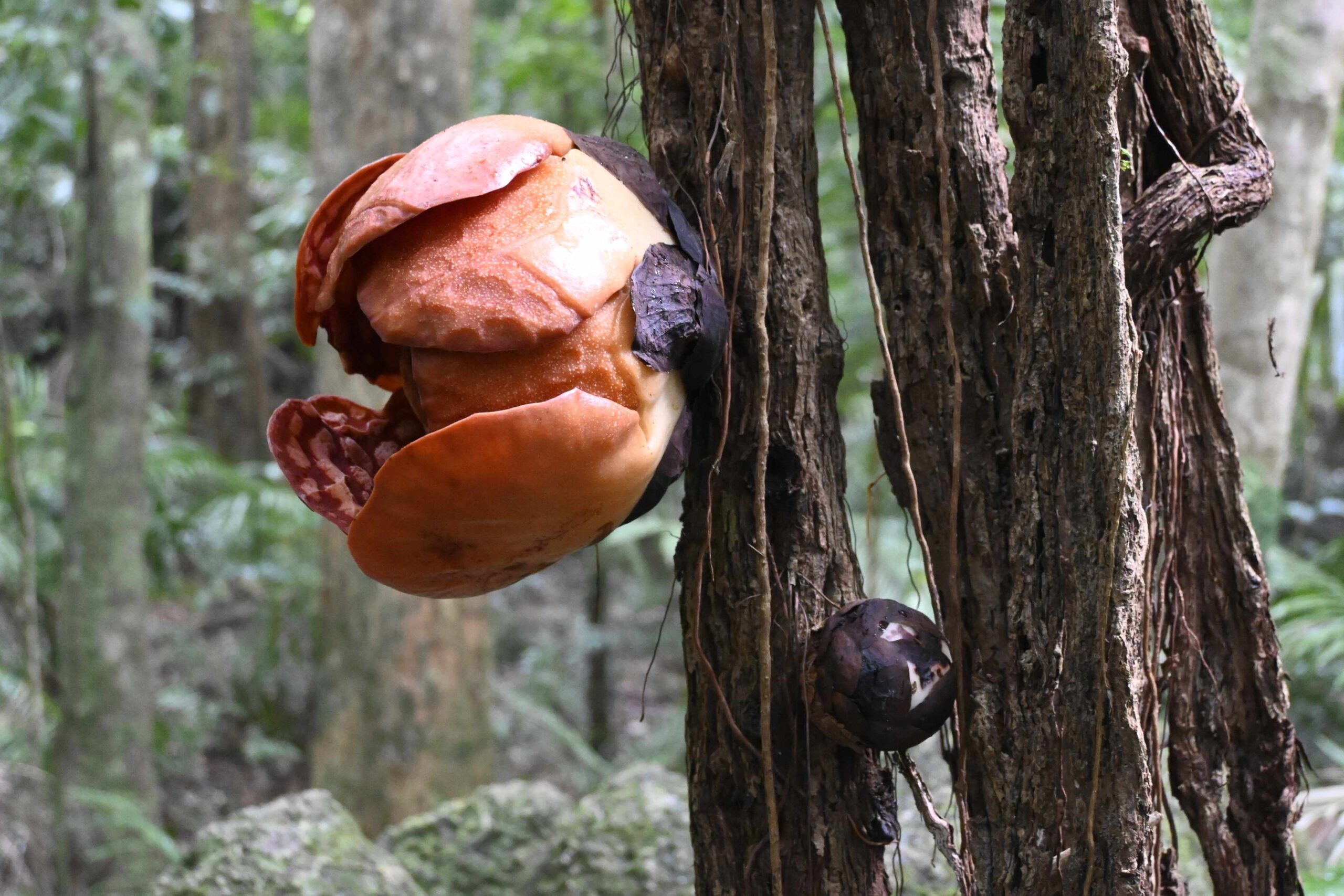 Rafflesia: Über kleine Flüsse führt den Weg weiter bergauf zur Rafflesia-Blume. Etwa 20cm große Blüten hängen in 1-3m Höhe an einer Schmarotzer-Liane, die sich um einen stabilen Baum windet.