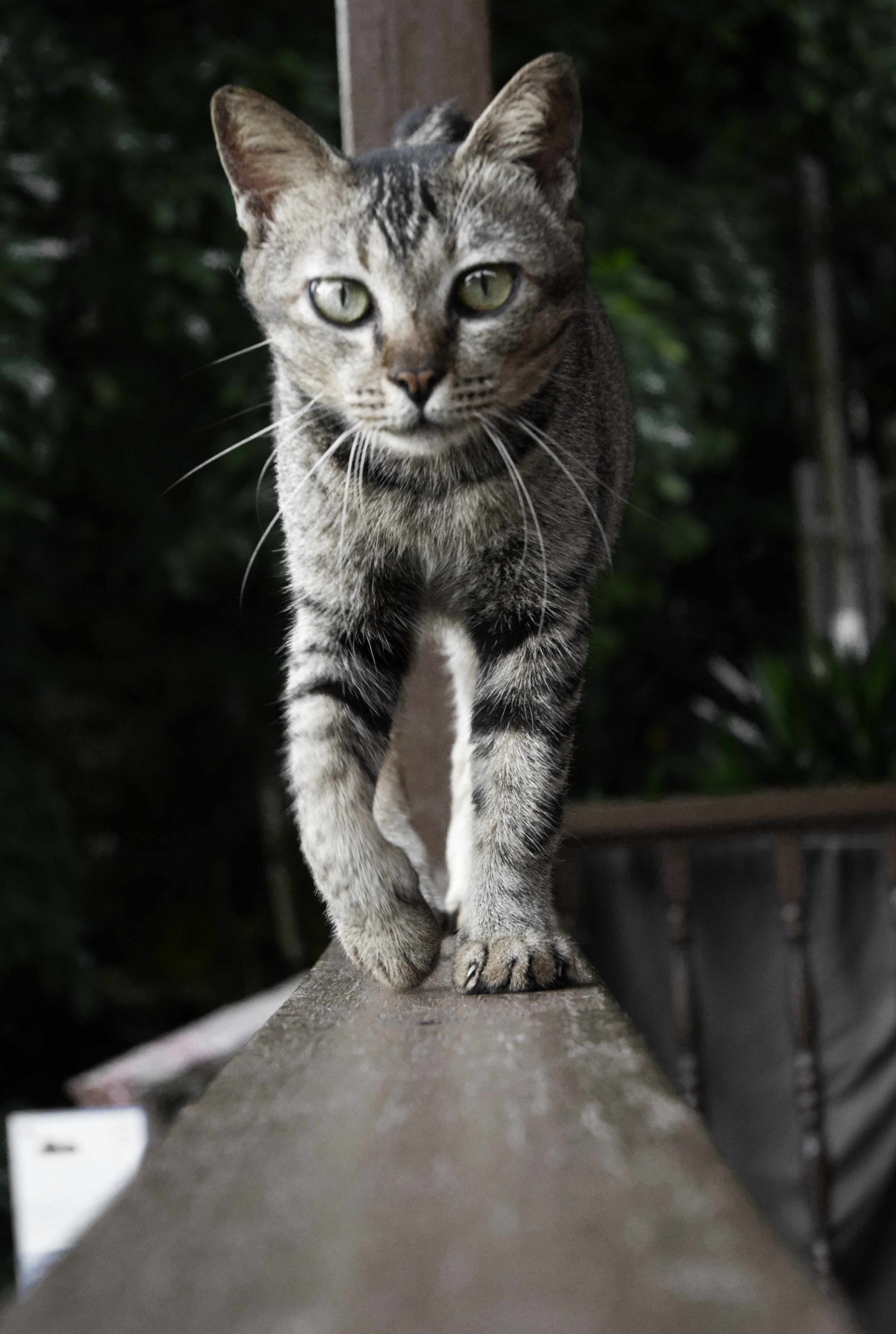 Abgerundet wird dieser tierreiche Tag durch unsere neue Bungalow-Katze. Sie scheint sich so wohl bei uns zu fühlen, dass sie für die Kamera auf dem Balkongeländer modelt.