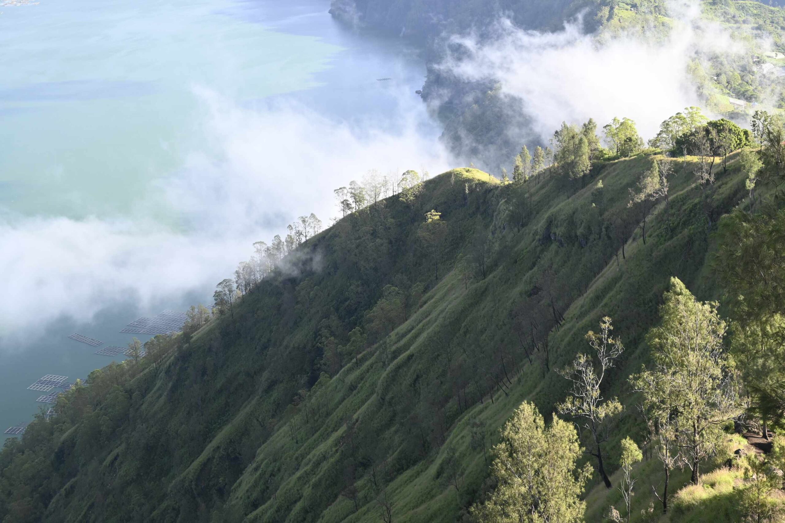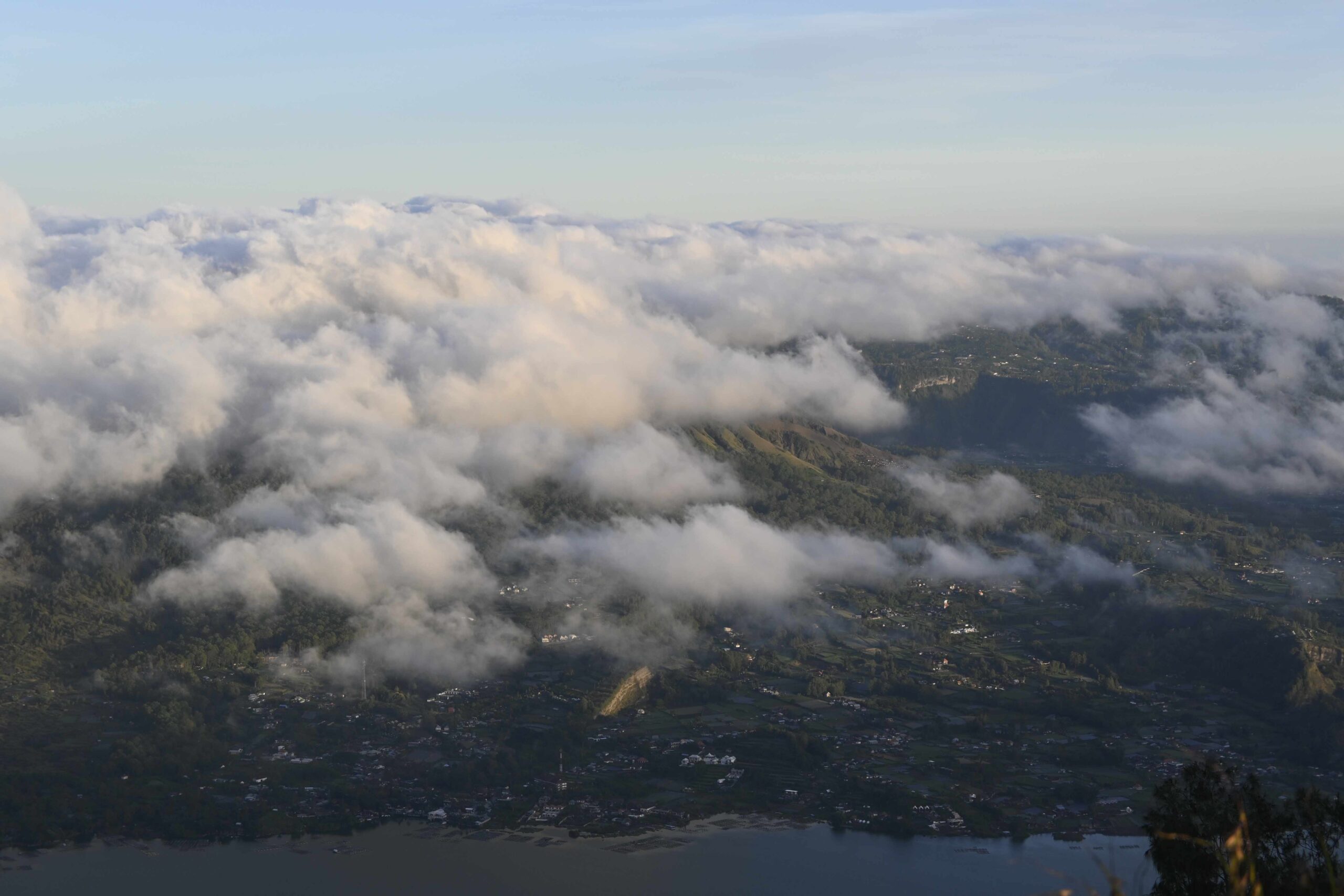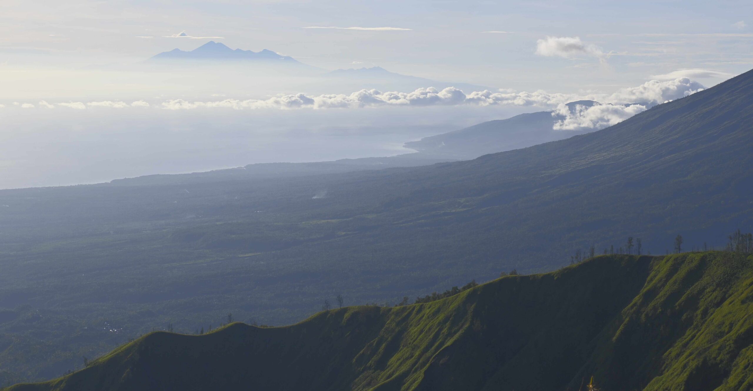 Nach 7 Uhr: Endlich wird es warm und richtig hell. Nach einer kurzen Absprache beschließen wir lieber hier weiter die Aussicht zu genießen als den Mount Abang zu erklimmen.