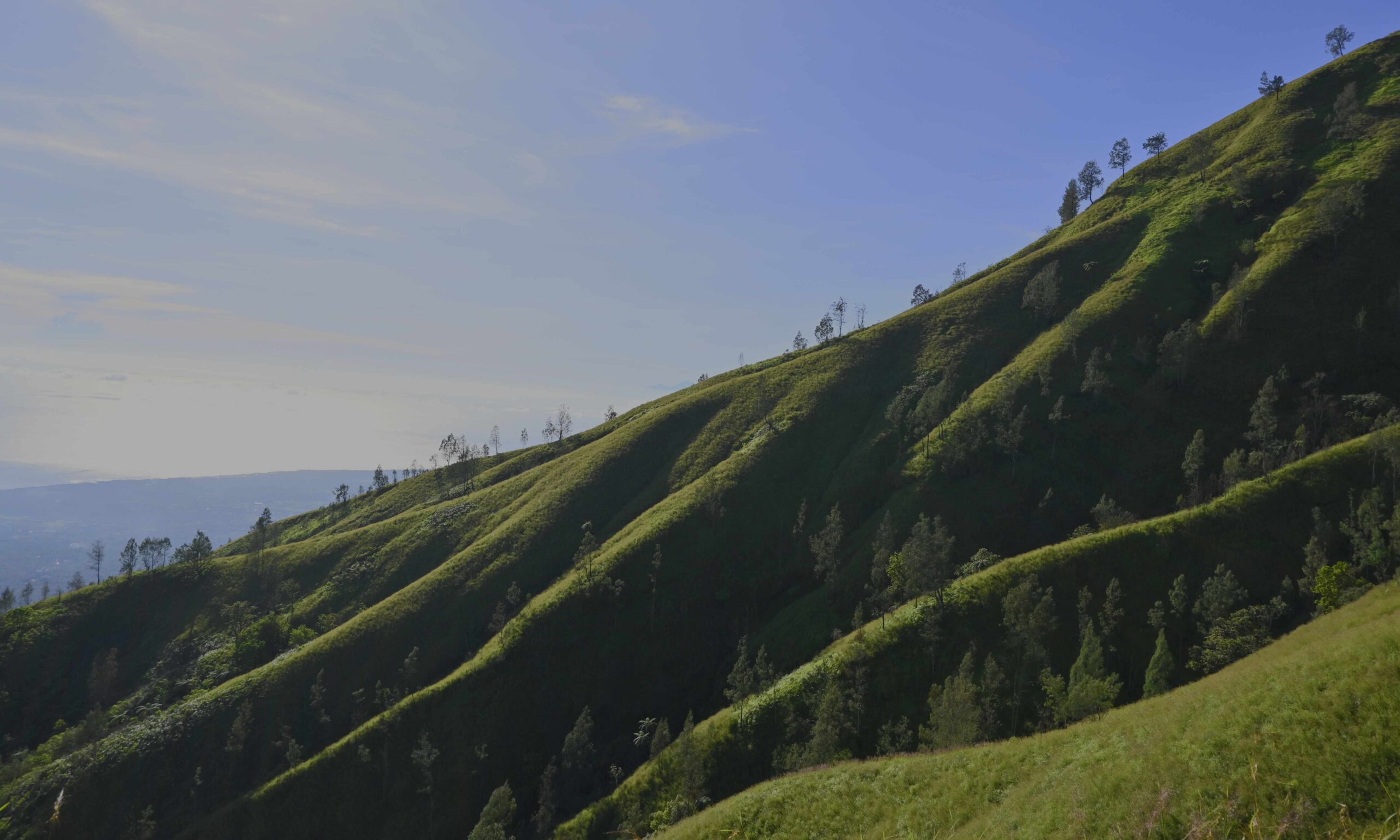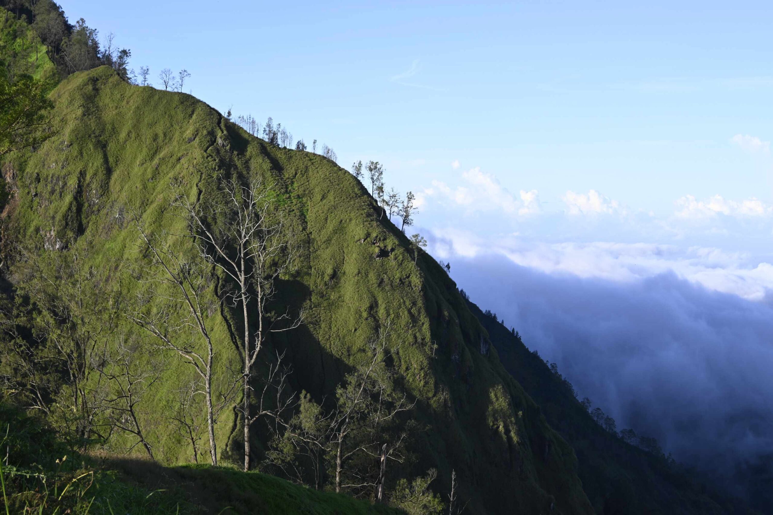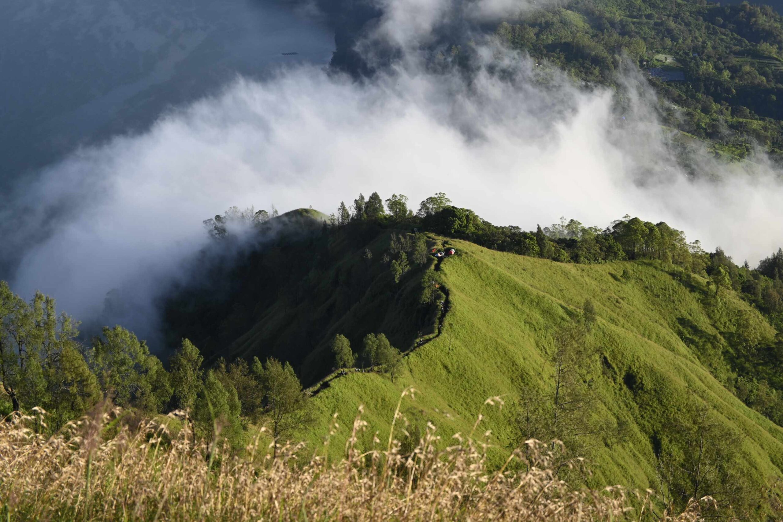 Nach 7 Uhr: Endlich wird es warm und richtig hell. Nach einer kurzen Absprache beschließen wir lieber hier weiter die Aussicht zu genießen als den Mount Abang zu erklimmen.