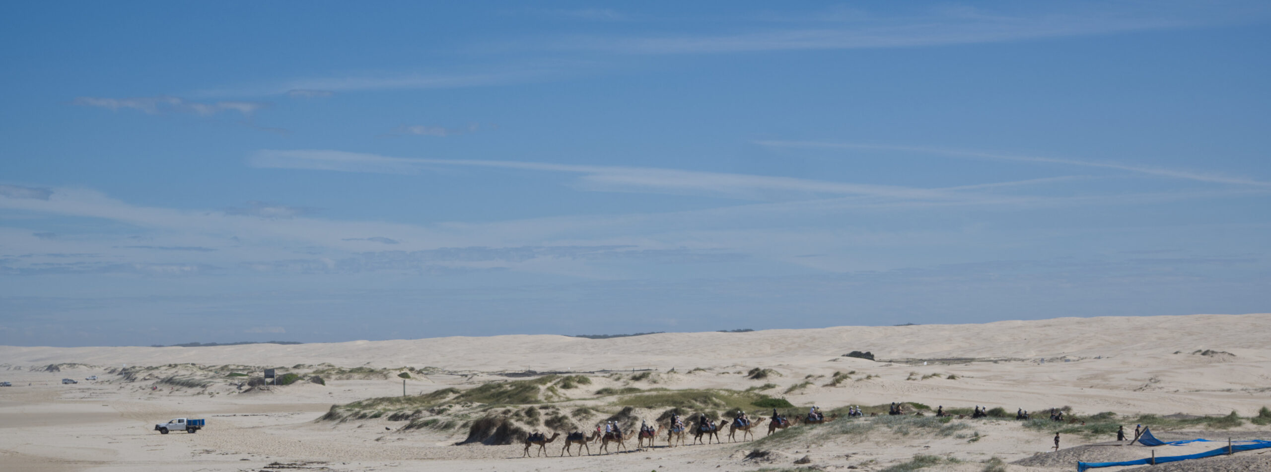 Zur Feier von Janas und Hamishs erstem Hochzeitstag, machen wir einen Mini-Roadtrip in den Norden nach Nelson Bay. Die Bucht ist umgeben von großen Sanddünen und ob mans glaub oder nicht, aber hier werden Kamel-Touren angeboten.
