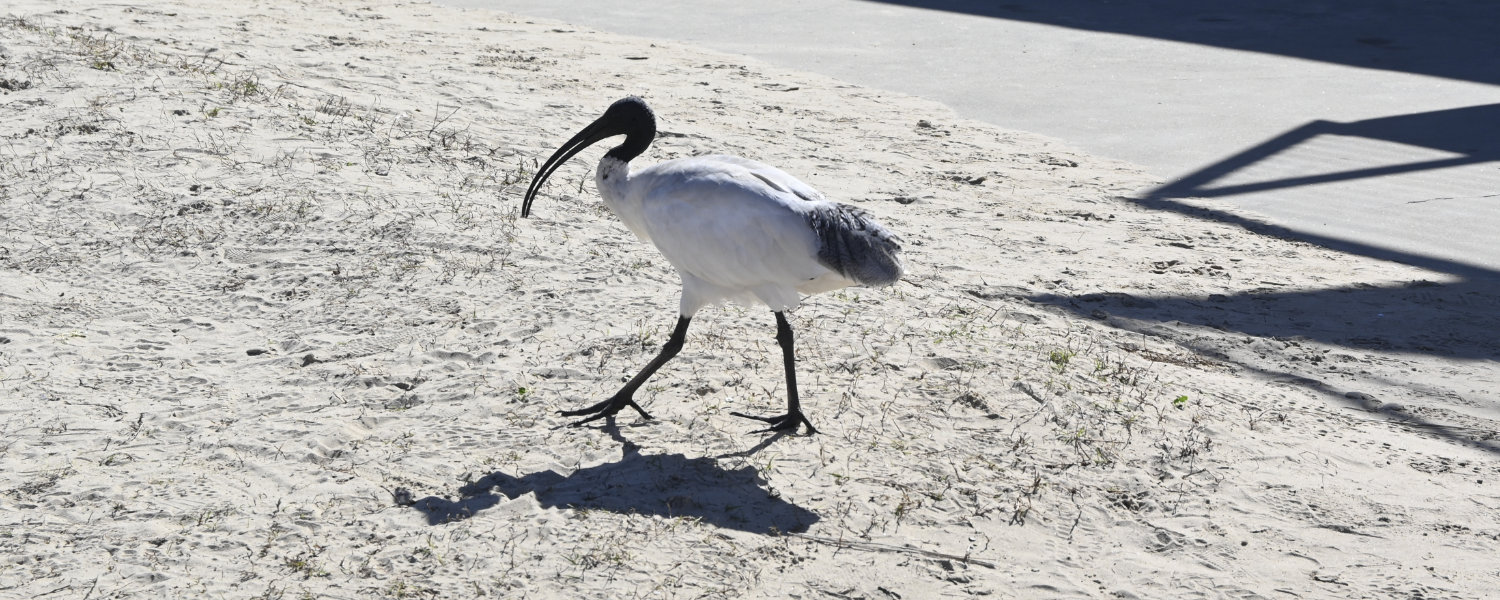 Angefangen mit den Kamelen wird dies ein Tag voller neuer Tiere. Direkt am Parkplatz läuft uns ein Ibis über den Weg.